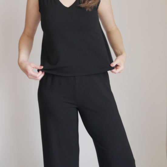 I love the fabric & accessibility of this jumpsuit. I can dress it up for work and down for a trip to the park. It’s almost perfect, I wish the overtop “shirt” was a bit longer & sewn more to the inner lining so it wasn’t so difficult to put on/hang up. I also wish there was a tall option, the pants a cute crop on the models but a bit extreme on me (5’10).