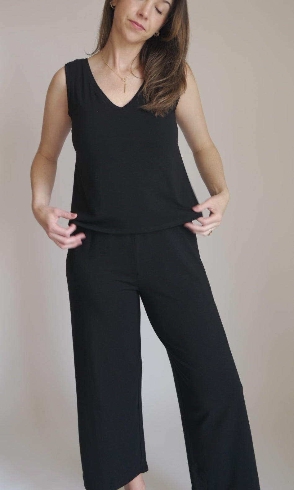 I love the fabric & accessibility of this jumpsuit. I can dress it up for work and down for a trip to the park. It’s almost perfect, I wish the overtop “shirt” was a bit longer & sewn more to the inner lining so it wasn’t so difficult to put on/hang up. I also wish there was a tall option, the pants a cute crop on the models but a bit extreme on me (5’10).